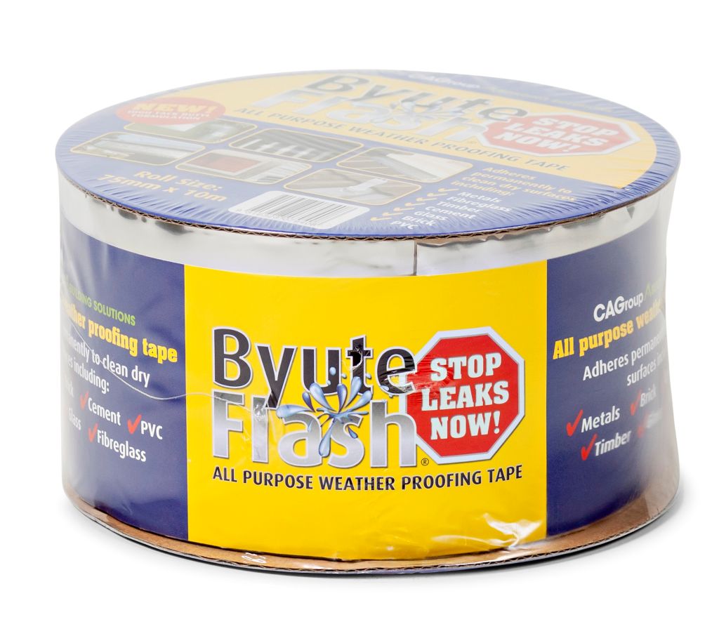 Byute Flash is a versatile, self-adhesive weatherproofing tape designed for sealing, flashing, and waterproofing in a wide range of building and roofing applications. With its aluminium facing and butyl rubber adhesive backing, it provides a durable, flexible barrier against water, air, and dust.