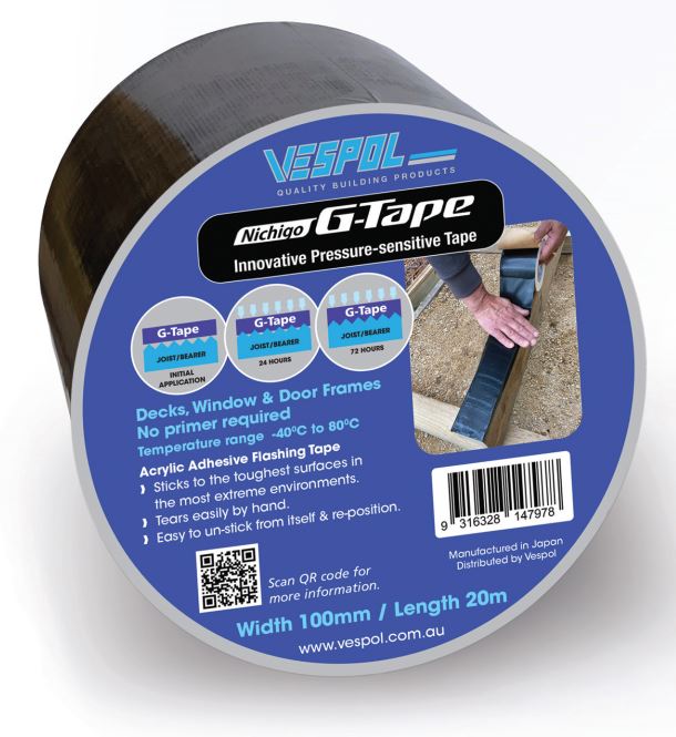 G-Tape is a premium self-adhesive flashing tape specifically designed to protect timber joists and bearers in decking applications. Made from advanced acrylic adhesive with a tough, UV-stable polyethylene surface, G-Tape extends the life of timber substructures by sealing out moisture and preventing rot.